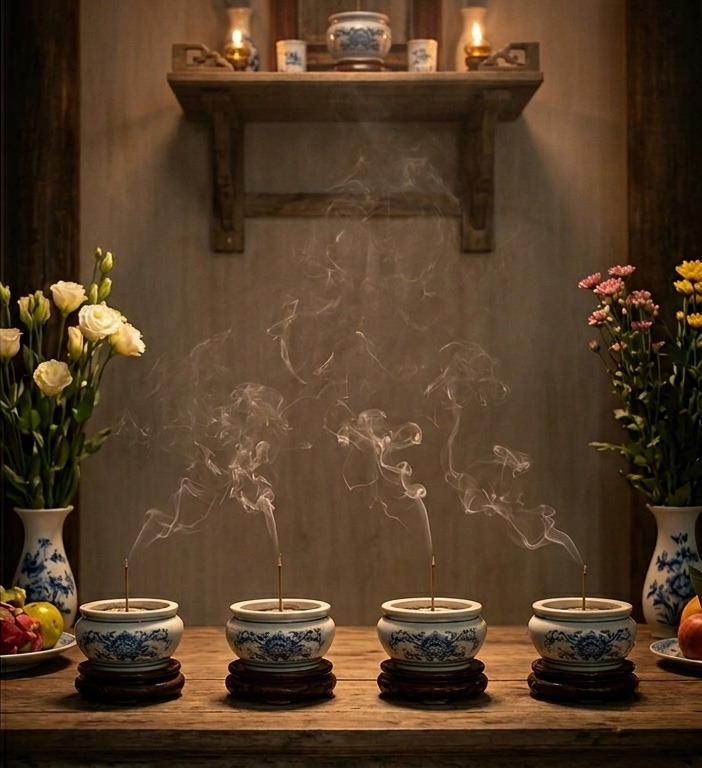 Vì vậy, người xưa mới nhìn bố cục 4 bát hương như một thế không lành về mặt bài trí. Không phải là “xấu” theo nghĩa mê tín đơn giản, mà là không thuận phép, không thuận cái đạo “có gốc có ngọn, có chính có phụ” trong không gian thờ phụng. Bốn bát hương dễ khiến ban thờ trở nên rườm rà về hình thức, nặng về chia phần, mà nhẹ đi sự tập trung cần có.