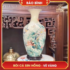 Bảo bình vẽ vàng Bói Cá Sen Hồng H60
