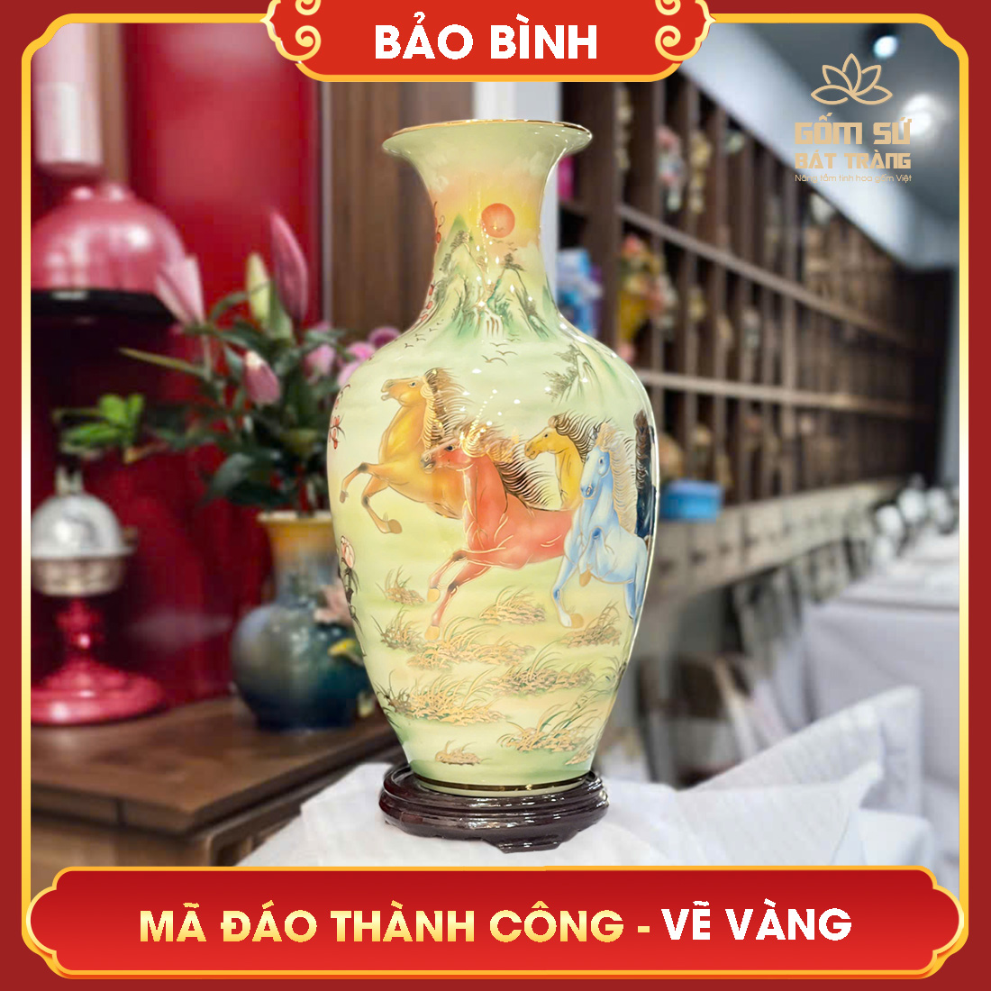 Bảo bình vẽ vàng Mã Đáo Thành Công H60