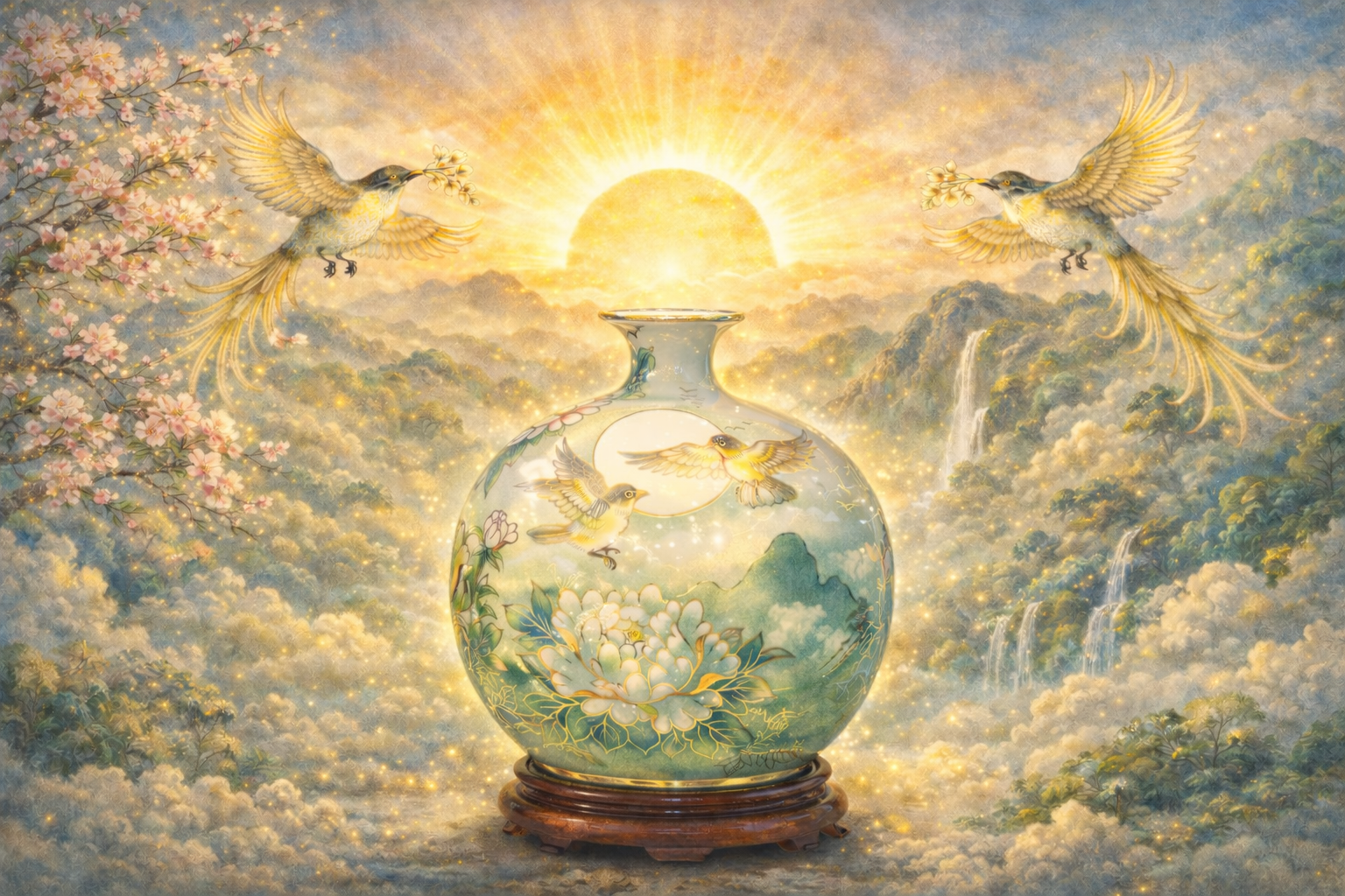 Tổng hòa lại, Hỷ Tước Nghênh Thái Dương là một bức tranh về sự cân bằng tuyệt mỹ: giữa sự mềm mại của niềm vui (Hỷ) và sự uy nghiêm của quyền lực (Thái Dương). Sở hữu chiếc bình này chính là sở hữu một bảo vật trấn trạch, giúp gia chủ luôn giữ được tâm thế rạng rỡ để đón lấy vạn sự cát tường.