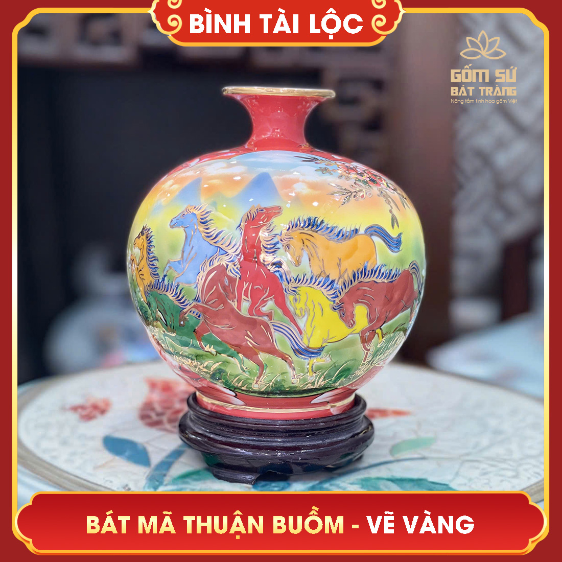 Review Bình tài lộc vẽ vàng nhị cảnh Bát Mã Thuận Buồm H26