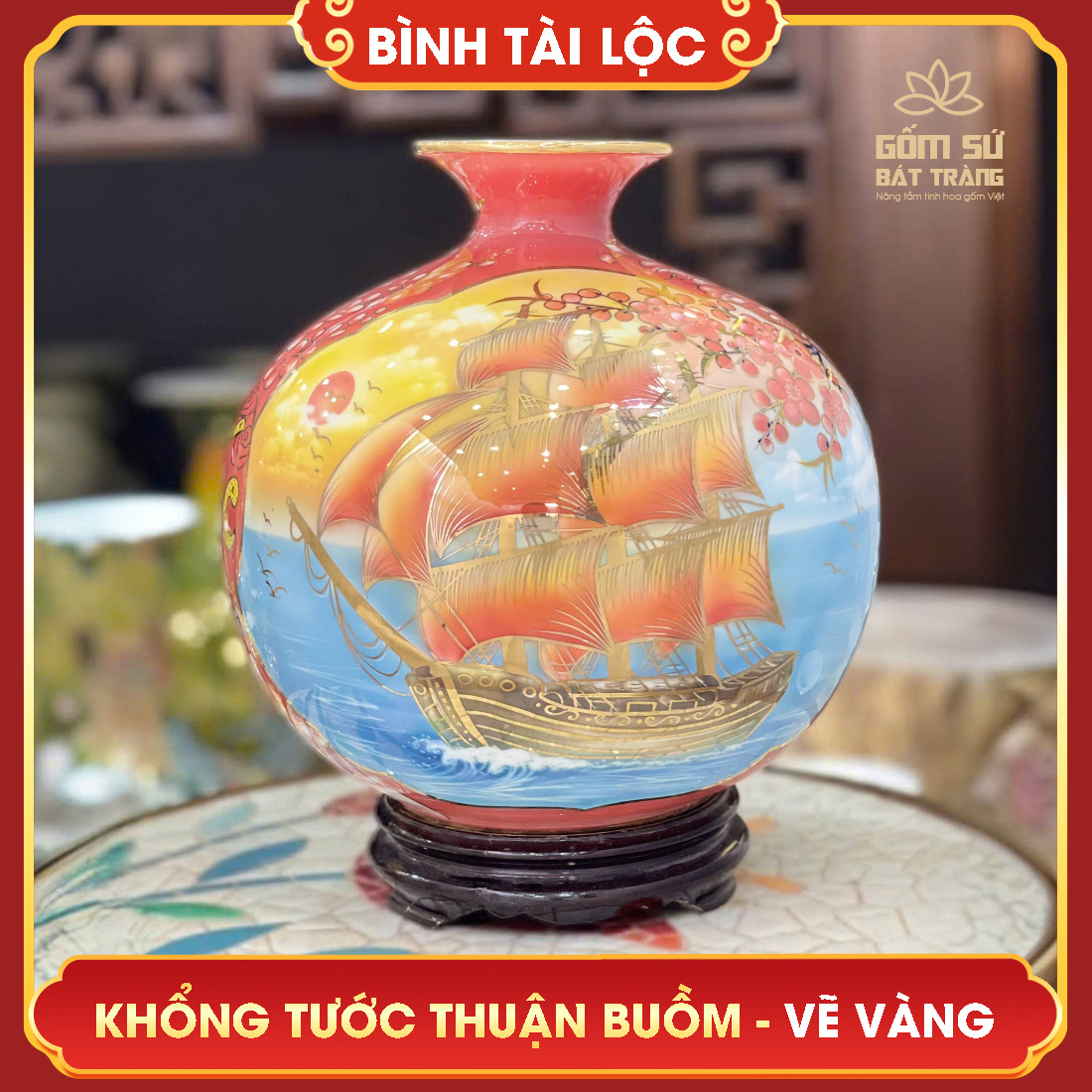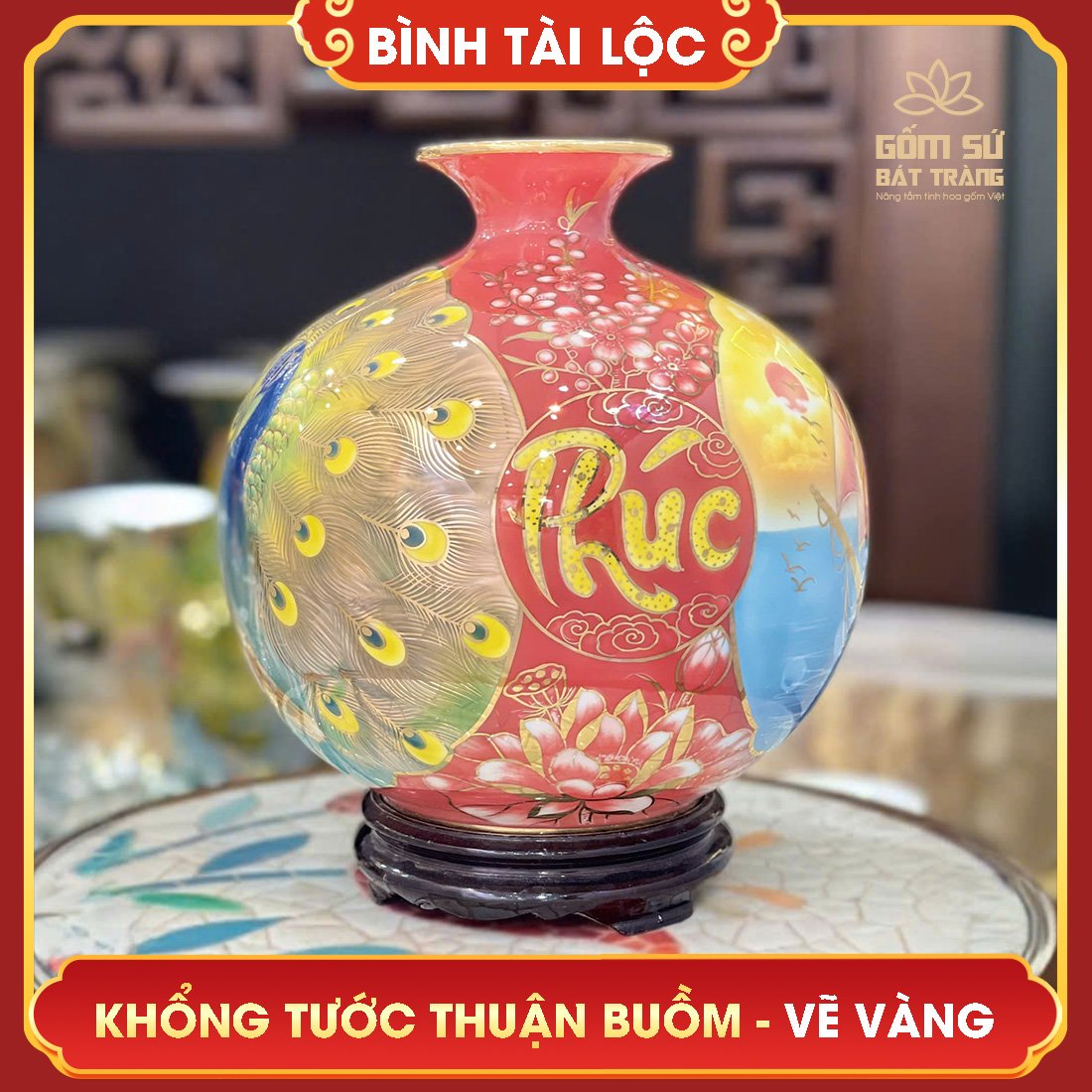 Đặt mua Bình tài lộc vẽ vàng nhị cảnh Khổng Tước Thuận Buồm H32