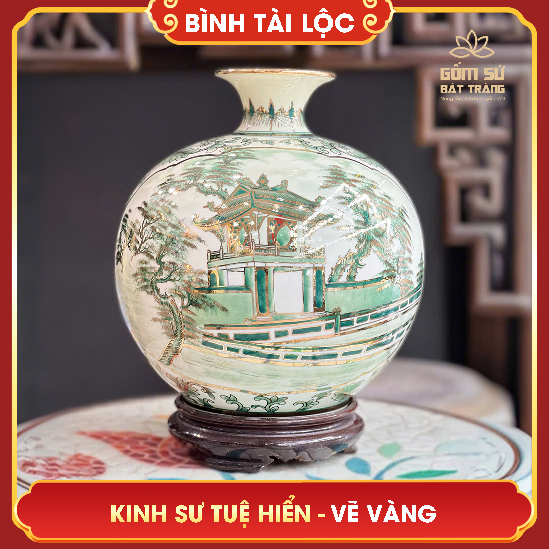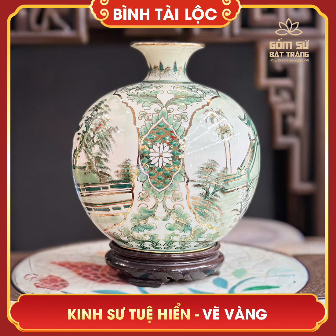 Đặt mua Bình tài lộc vẽ vàng nhị cảnh Kinh Sư Tuệ Hiển H30
