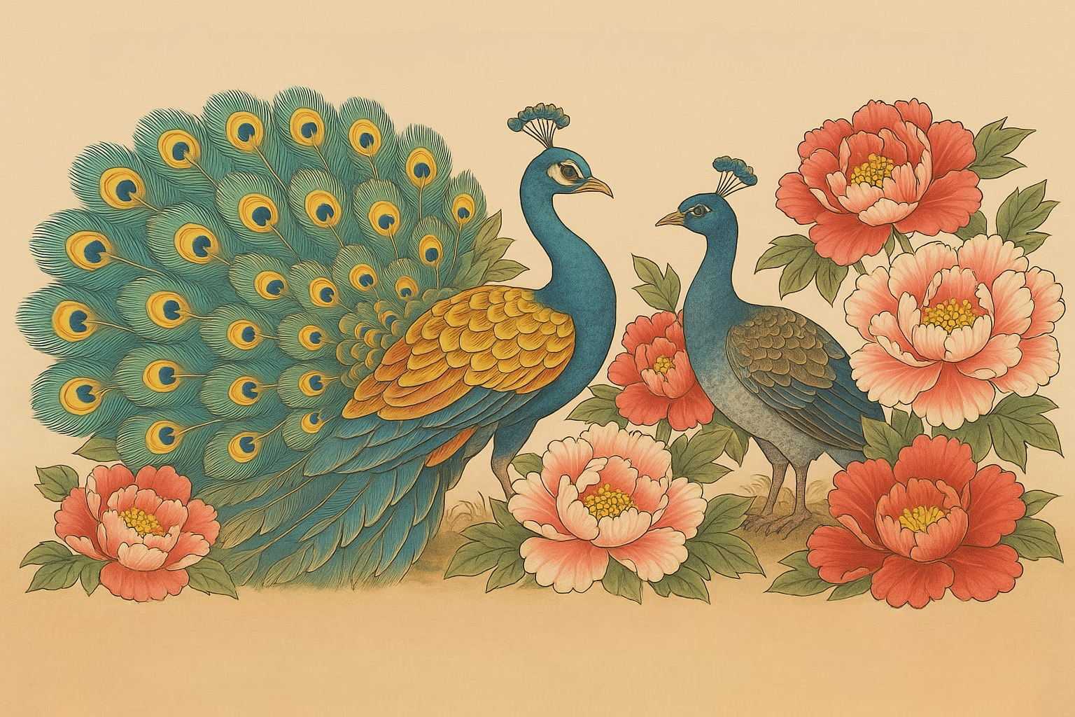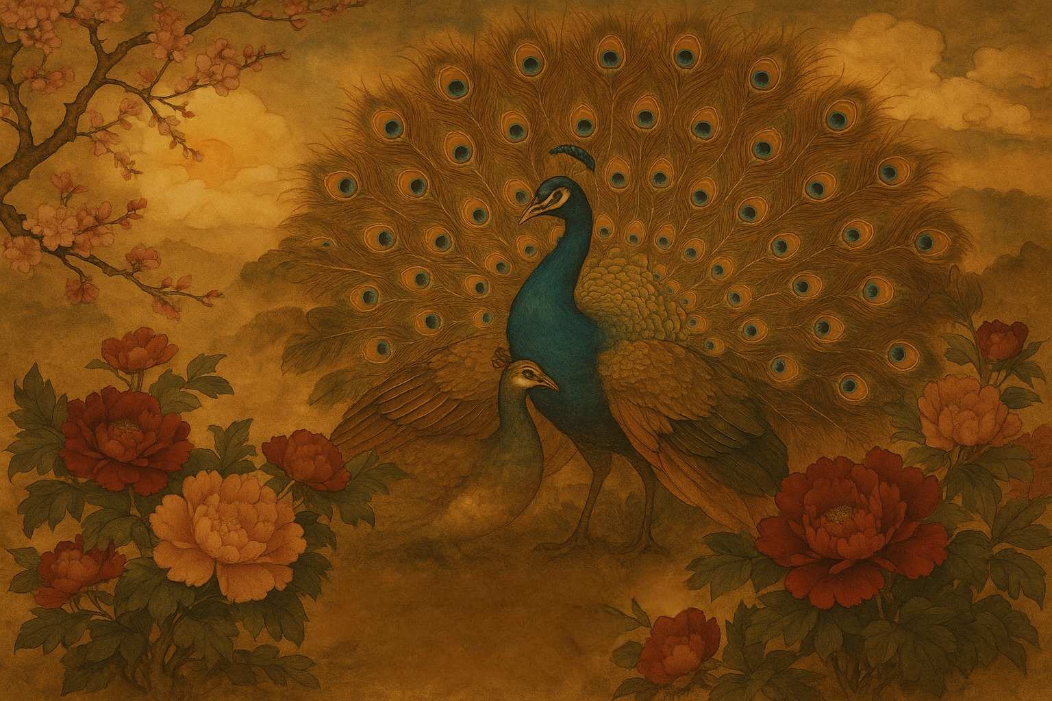 “Phú Quý Mãn Đường” – Tìm Hiểu Ý Nghĩa Họa Tiết Chim Công Và Hoa Mẫu Đơn