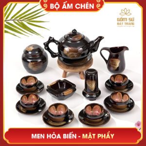 - Trong hộp có: Bộ ấm chén men hỏa biến xanh ngọc lục bảo