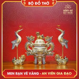 Bộ đồ thờ men rạn vẽ vàng An Viên Gia Đạo
