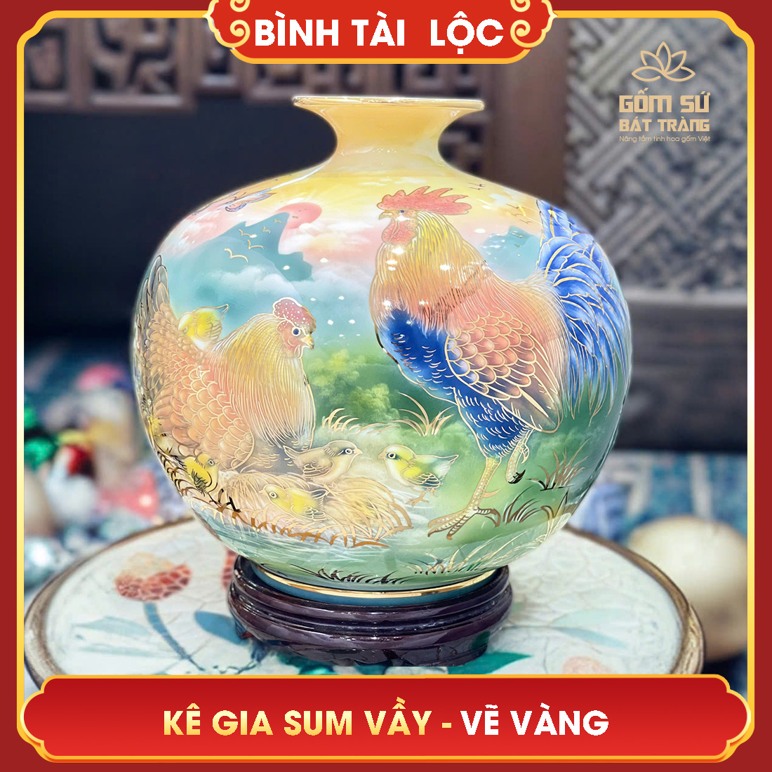 Đặt mua Bình tài lộc vẽ vàng Kê Gia Sum Vầy H35