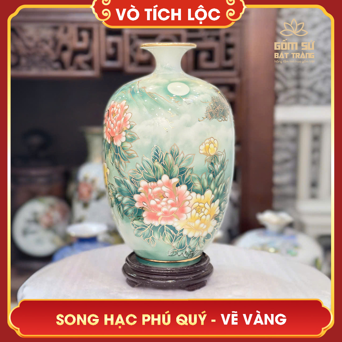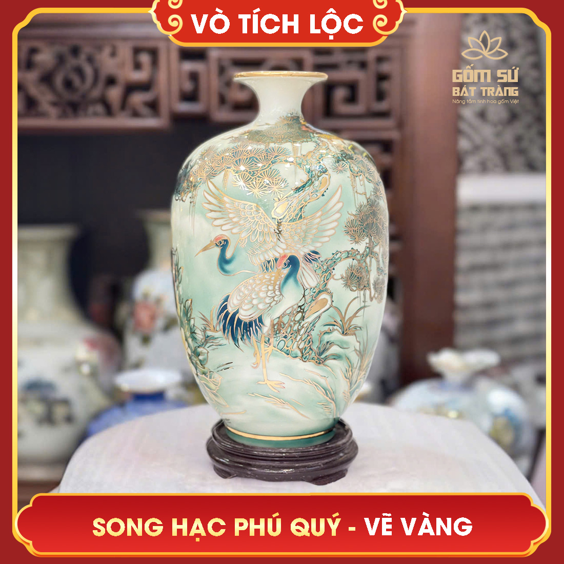 - Trong hộp có: Vò tích lộc vẽ vàng Song Hạc Phú Quý H38