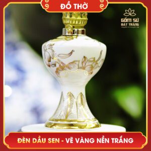 Đèn dầu Hoa Sen vẽ vàng nền trắng