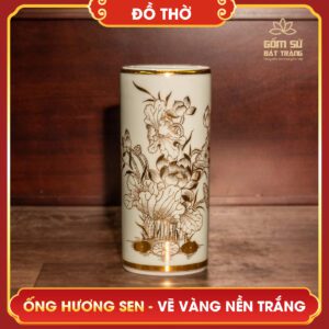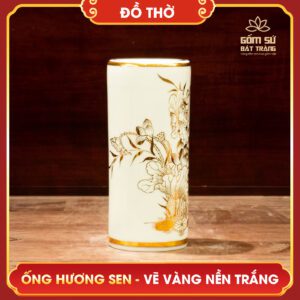 Ống hương Hoa Sen vẽ vàng nền trắng
