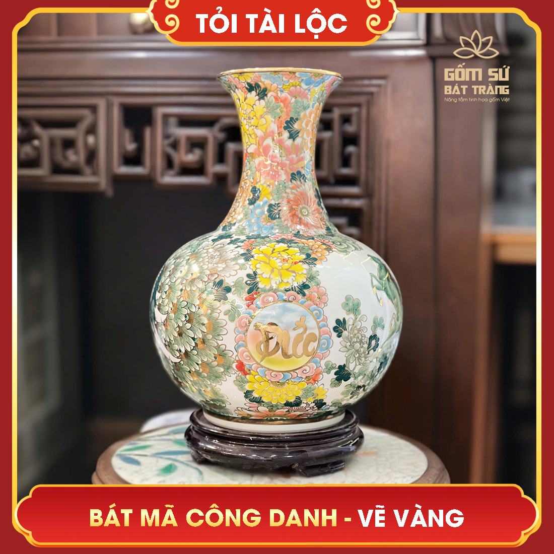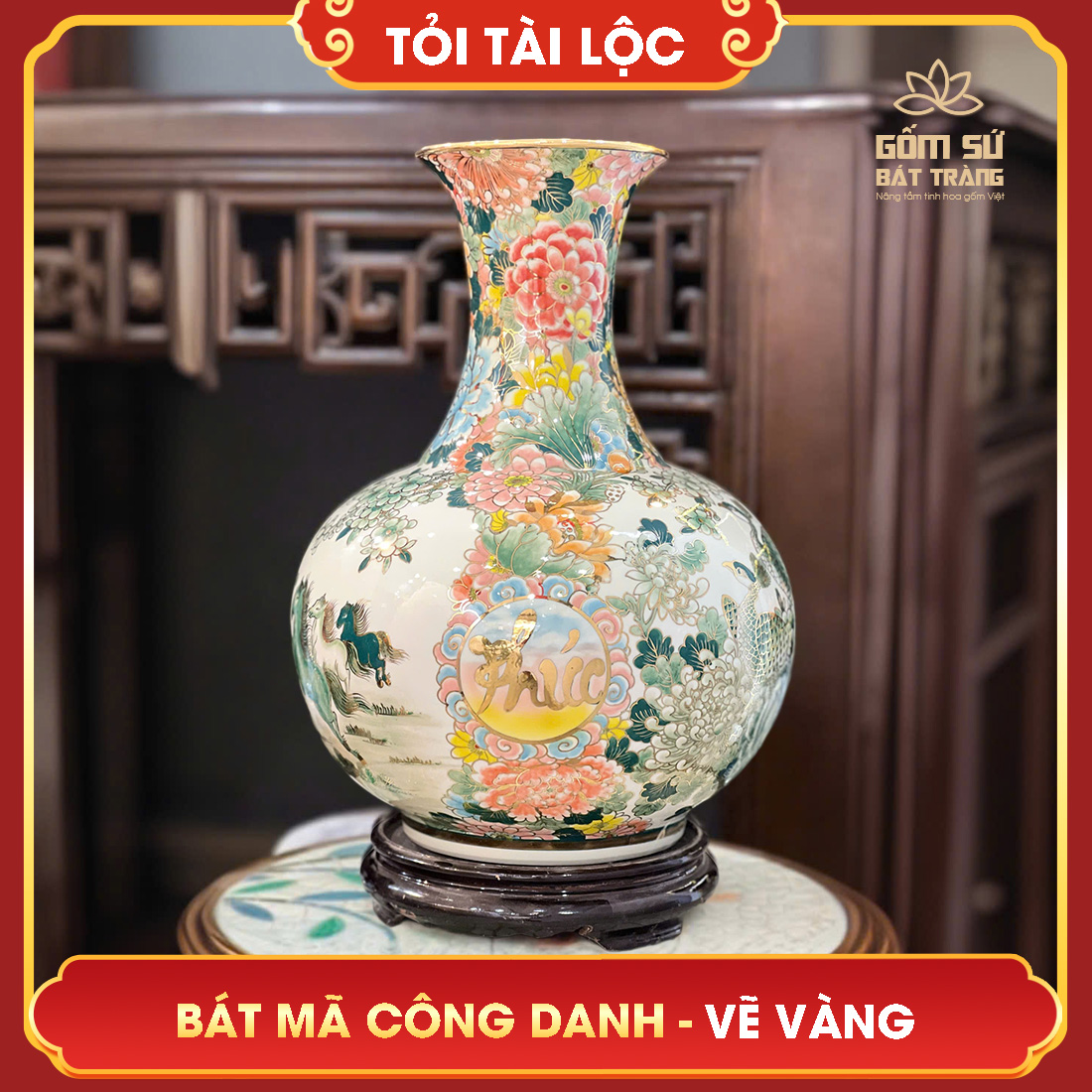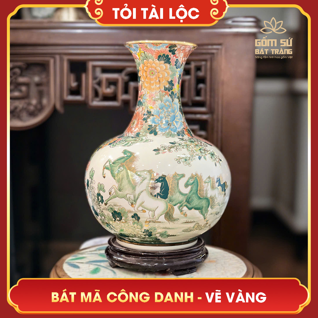 Đặt mua Tỏi tài lộc vẽ vàng nhị cảnh Bát Mã Công Danh H50
